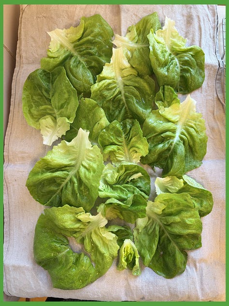 Spăl frunzele și le las la uscat pe un prosop de bucătărie.